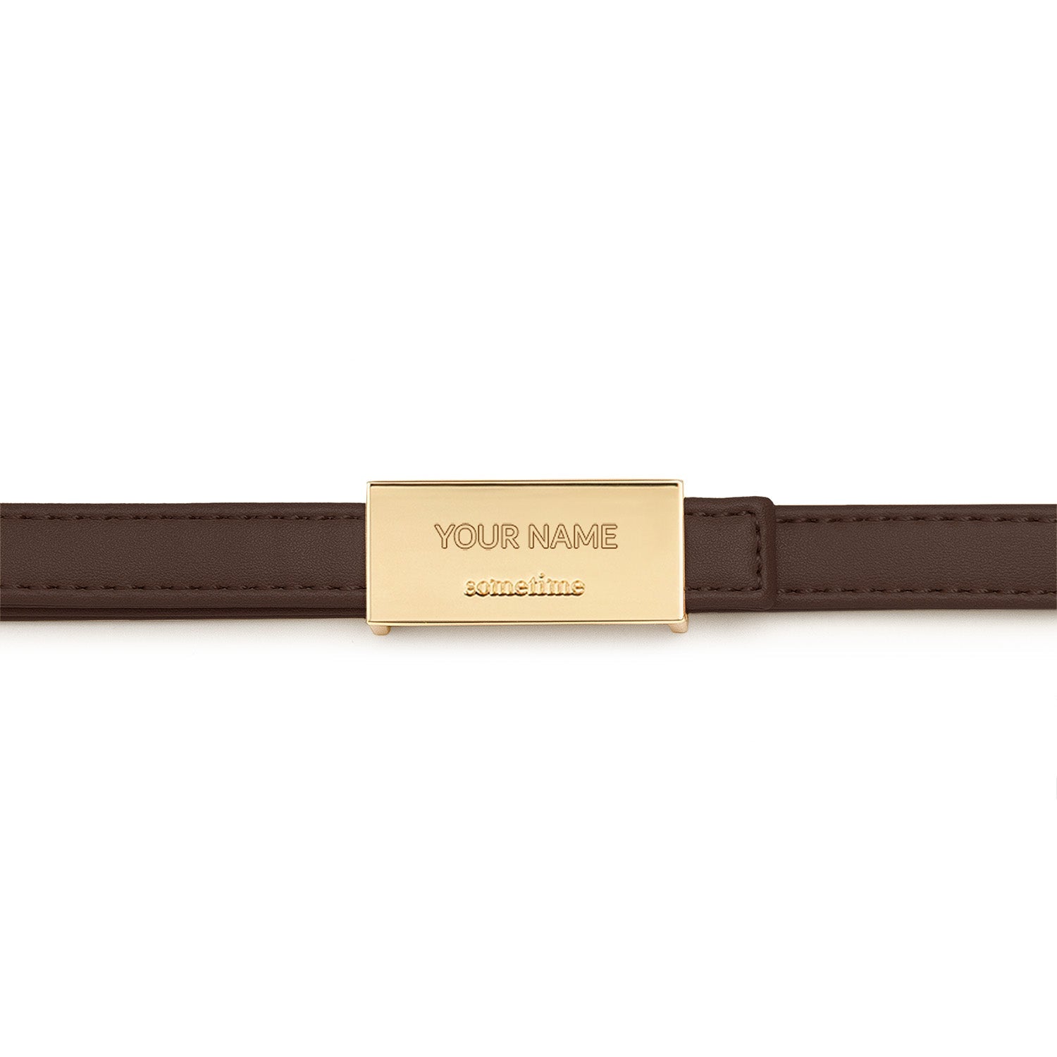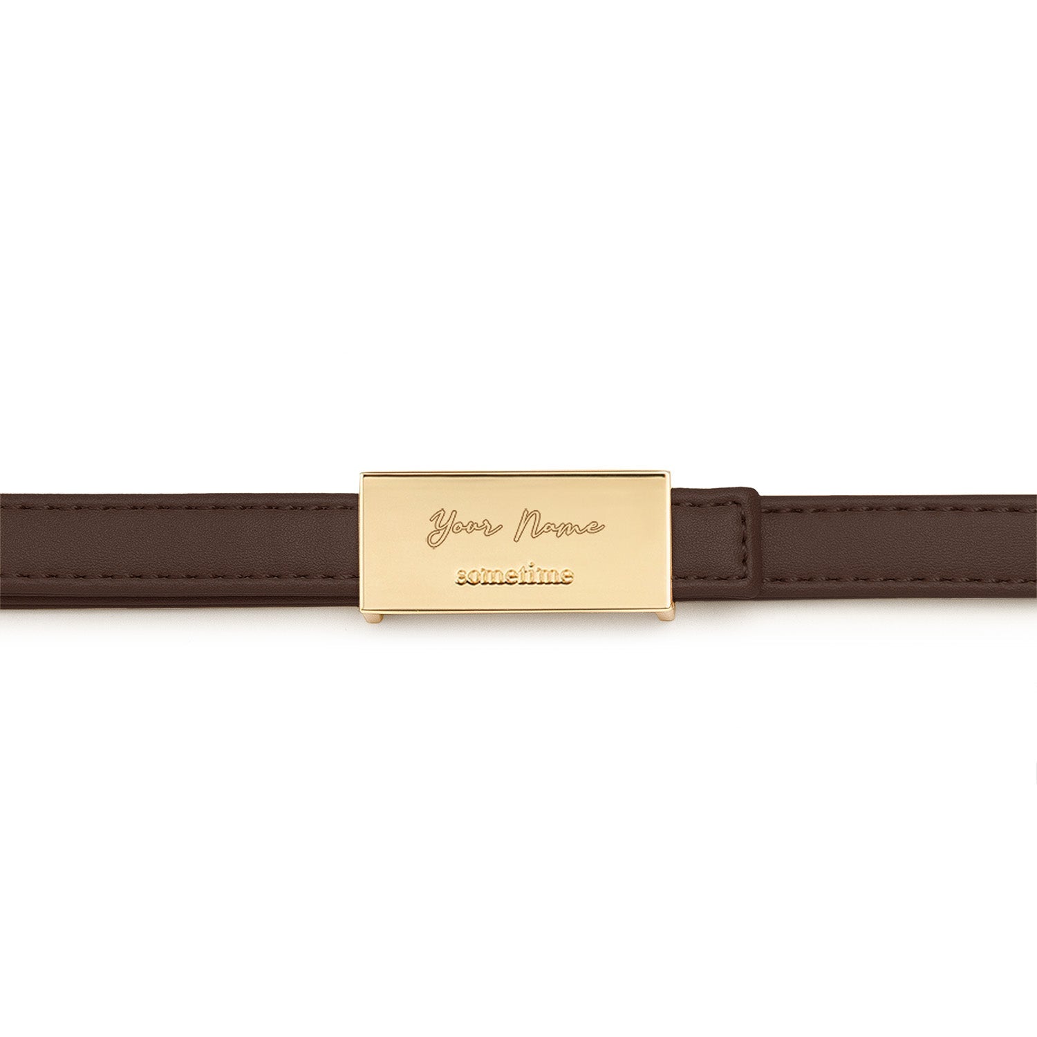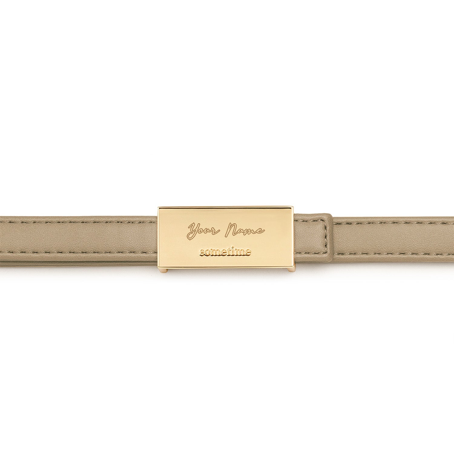 Add a personal touch by engraving up to 10 letters on the gold buckle of the adjustable long strap.