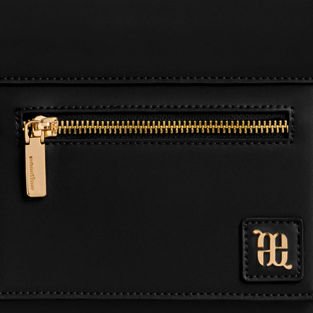 The exterior spares no expense in offering storage as well. A zipped flap pocket keeps cards and spare coins safe from falling out, and our signature easy-access back pocket saves space for hair ties and receipts.